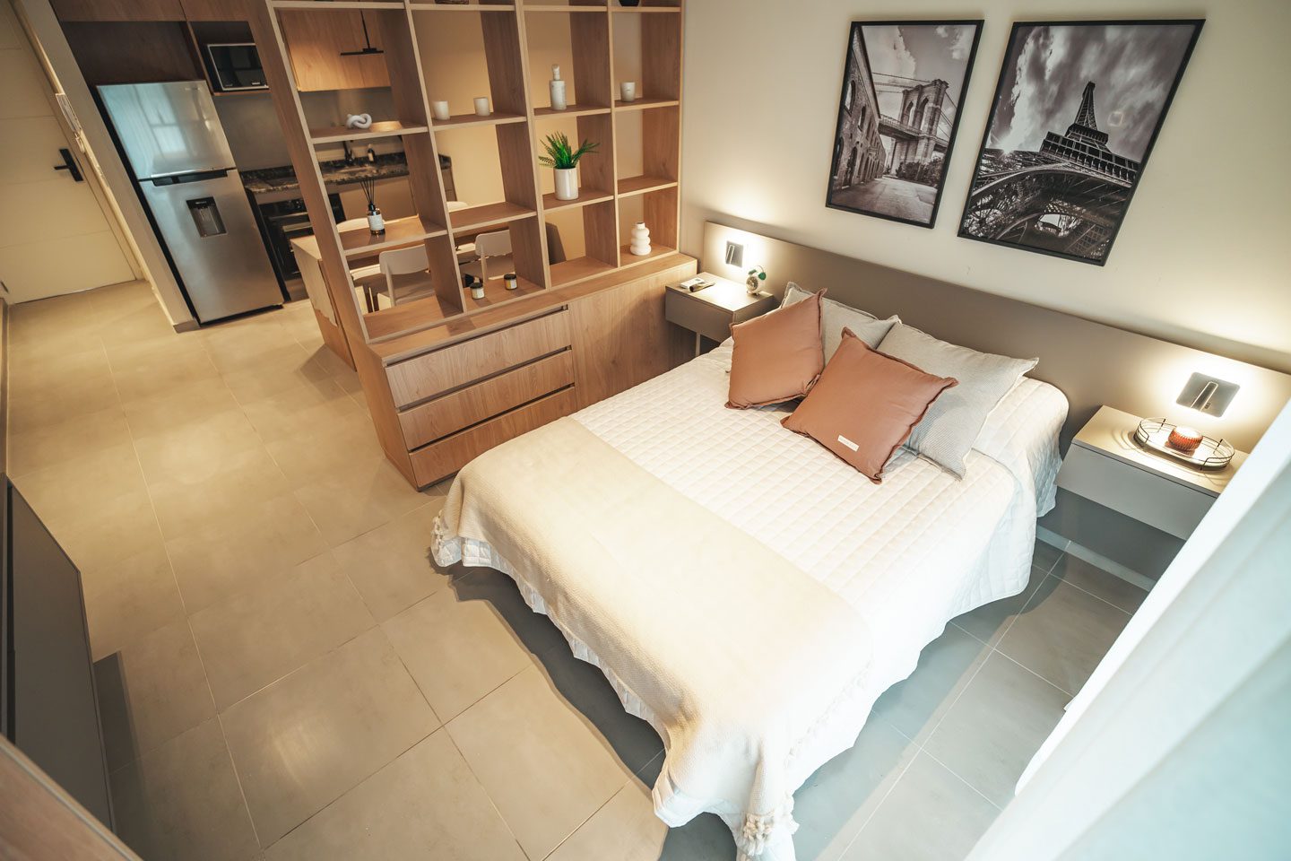 En una superficie de 2.400 m2, este edificio está pensado para satisfacer las necesidades de cada cliente, ya que cuenta con 13 monoambientes, 6 unidades de un dormitorio, 6 departamentos de dos dormitorios y 2 dúplex de uno. Además, un consultorio en planta baja. Se encuentra vendido en un 80% y se puede acceder con una entrega del 60% y saldo restante en 16 cuotas en pesos ajustables según el índice de la Cámara Argentina de la Construcción, o en dólares fijas, de acuerdo a la elección de cada cliente, ya que disponen de financiación propia.